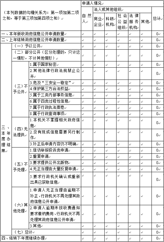 三、收到和处理政府信息公开申请情况
