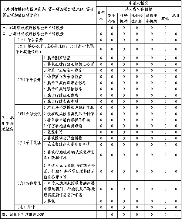 三、收到和处理政府信息公开申请情况