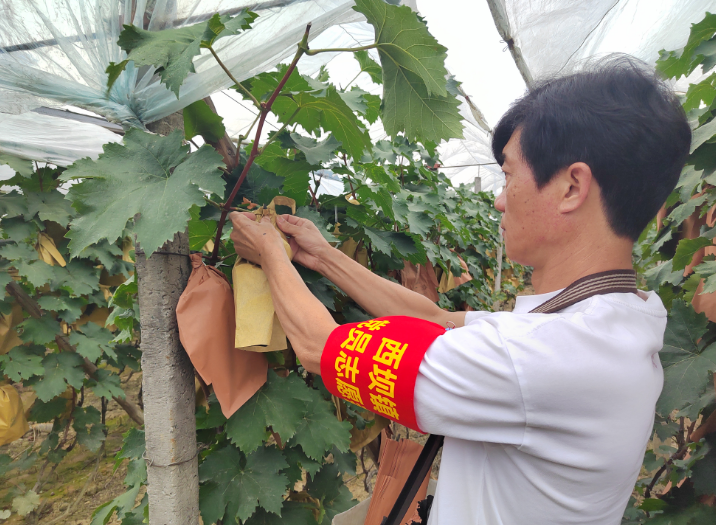 这不是当地志愿者参与的第一起助农行动。几天前,村民曾凡易因病住院,他种植的两亩巨峰葡萄无人帮忙套袋。村“两委”依托村里推行的积分制管理办法,迅速组织村民和党员志愿者组成“助农小队”,顶着烈日用时3天帮助老人完成葡萄套袋,以实际行动诠释了乡村邻里互助的深厚情谊。