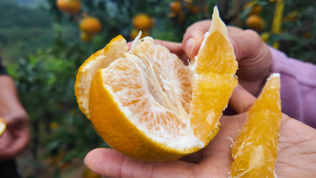 “听说这里的柑橘新品种挂果了,今天专门过来买,口感清甜多汁,果肉细嫩化渣。”市民曾祥荣夸道。