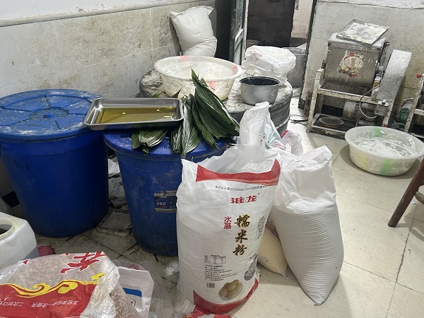 1.加工区域卫生较差,食品原料摆放混乱;